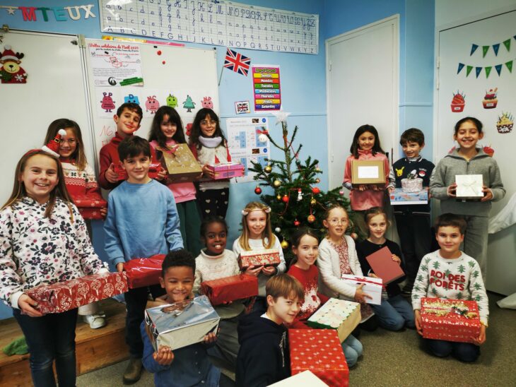 Notre école a proposé pour la 5ème année consécutive en cette période de l’Avent, aux élèves, aux familles et aux classes de remplir une boîte à chaussures avec un dessin, une douceur à déguster et un produit de première nécessité pour offrir un cadeau aux résidents des Petites Soeurs des Pauvres, avenue du Général Leclerc à RENNES.
