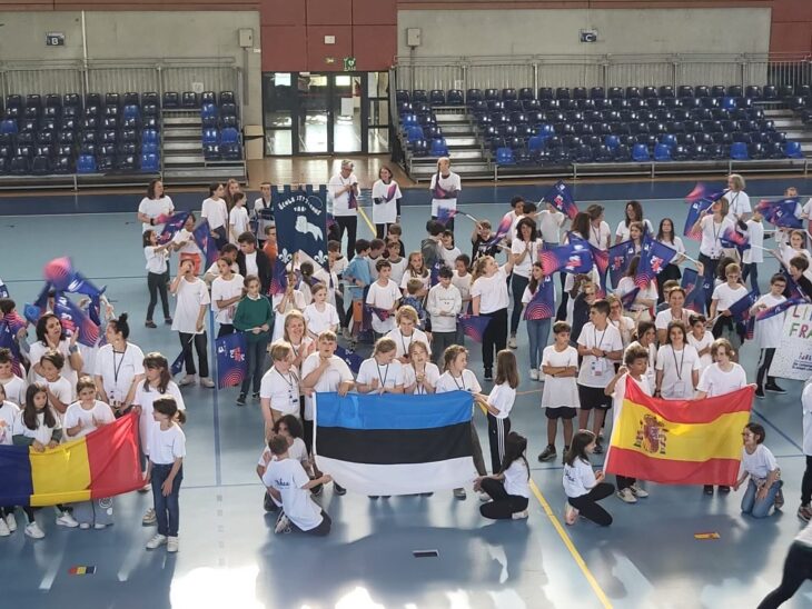 Tous nos élèves de CM étaient invités à la cérémonie de clôture du Projet ERASMUS+ à Cesson Sévigné au Palais des sports le vendredi 31 mai. Chaque école française: école Notre Dame de Cesson-Sévigné, la Providence Centre de Bruz, Ste Jeanne d’Arc de Rennes, Ste Catherine-St Joseph de Liffré et St Joseph de Fougères a présenté au cours de cette soirée, un chant ou une danse. Nos CM ont interprété « La jument de Michao » accompagnés à la guitare par 2 camarades de CM1 et un de nos enseignants.