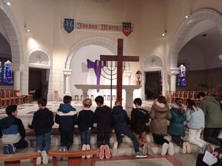 Tout au long de la Semaine Sainte, il a été proposé à tous les élèves qui suivent le parcours catéchèse du CE1 au CM2, ainsi qu’à leurs camarades du parcours culture chrétienne, qui le souhaitaient, de participer au Chemin de Croix à l’église Ste-Jeanne d’Arc.