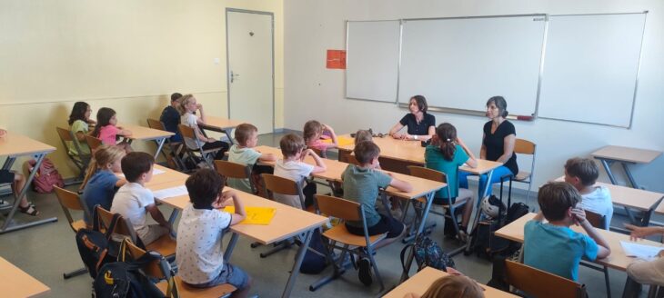 Le dernier Conseil d’élèves de cette année scolaire a eu lieu le mardi 25 juin pour nos élèves du CP au CM2. Cela a été l’occasion d’échanger avec eux sur les nouveaux tracés de la cour. Il en est ressorti que les enfants sont dans l’ensemble contents. Cependant, le terrain de football est jugé trop petit bien que suffisant pour les élèves qui ne jouent pas au foot, il manque un dé en mousse au jeu de l’oie, se pose la question de certains tracés (le terrain jaune, le cercle « médiation »). La marelle mériterait d’être retracée.
