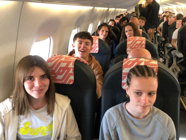 Le groupe de lycéens rennais dans l’avion pour le Sénégal.
