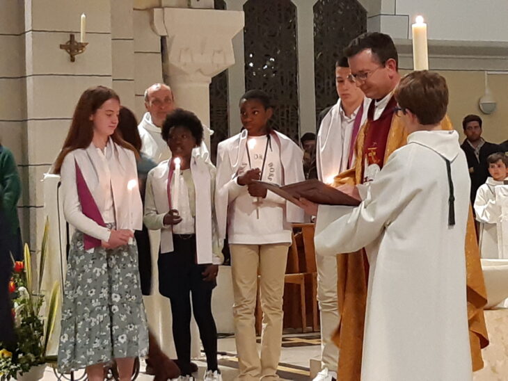 3 collégiens et 1 lycéen de st François d'Assise ont été baptisés lors de la veillée pascale : Angèle, Elisa, Derick et Ilan (jeanne d'arc). Mme Biedermann, Animatrice en Pastorale.
