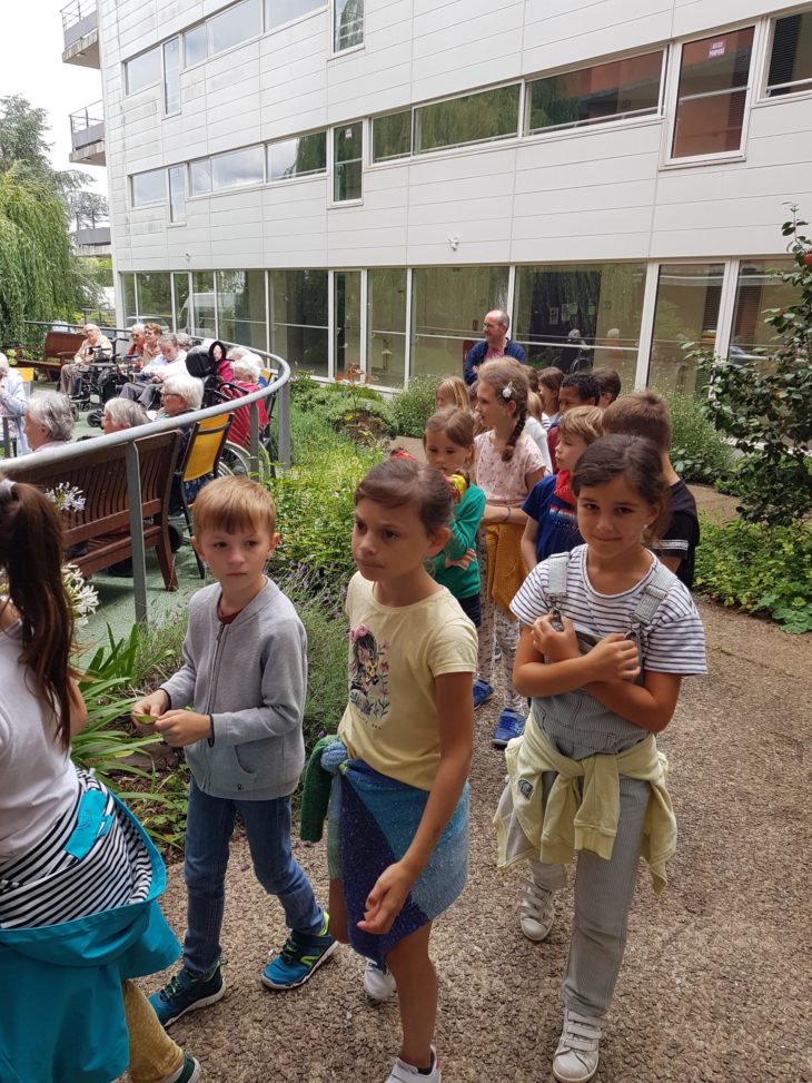Le grand jour de la rencontre est enfin arrivé ! Le 1er juillet dernier, les élèves de CE2B se sont rendus à la résidence Saint François de Rennes afin de rencontrer les résidents avec lesquels ils ont correspondu cette année. Des chants ont été partagés ainsi que des crêpes au chocolat. Quelle joie de terminer l’année de façon festive et quelle émotion !!