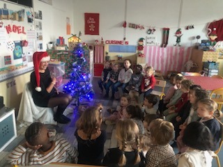 Un moment entre parenthèse pour nos élèves de Toute Petite Section et de Petite Section avec une histoire adaptée aux petits et une petite mise en scène. L’histoire de Mme Lapin qui souhaite décorer son sapin pour Noël. M. Lapin a déposé le sapin dans le terrier mais il n’y a pas de décoration et il fait très froid dehors!!! Toc toc toc, c’est l’écureuil qui apporte une petite boîte avec des pommes de pin … puis l’araignée ( fils argentés), le hérisson ( pommes rouges) et la mésange ( fagots de brindilles). Le sapin est décoré et très beau.