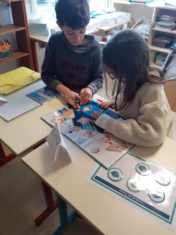 Ce lundi, deux animateurs de l’Association « Feuille d’érable » sont venus proposer des jeux en équipe aux élèves des classes de CM1 et de CE2-CM1, sur le thème de la consommation : « Que peut-on réutiliser ? », « Que peut-on acheter d’occasion ? », « De quoi pourrait-on aisément se passer ? » …