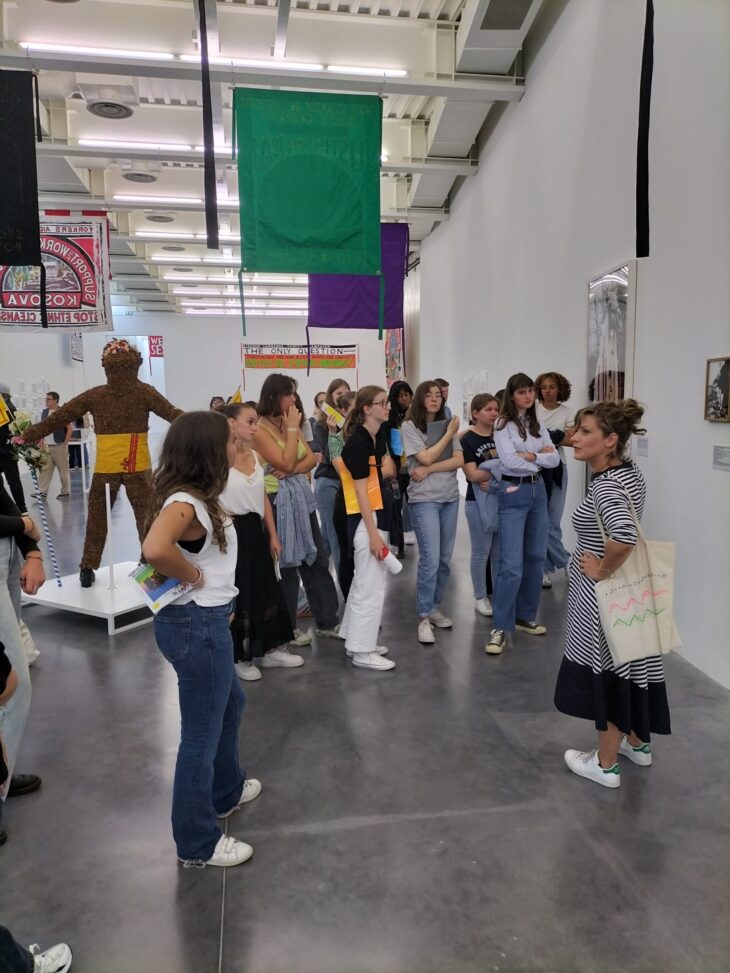 Les élèves attentifs écoutent la guide.