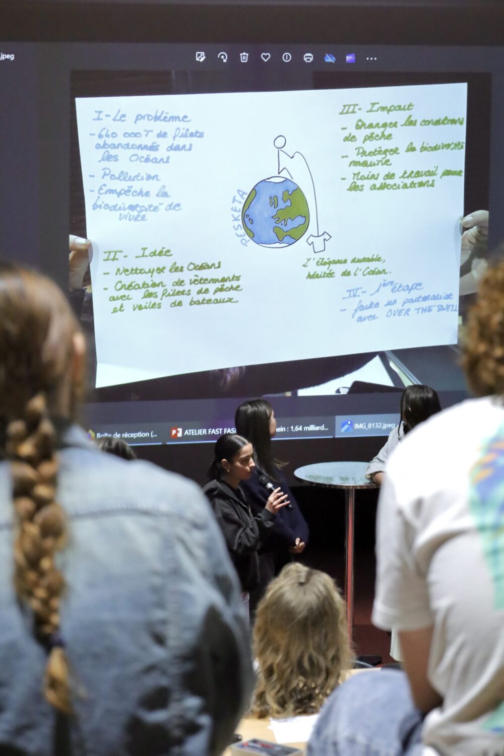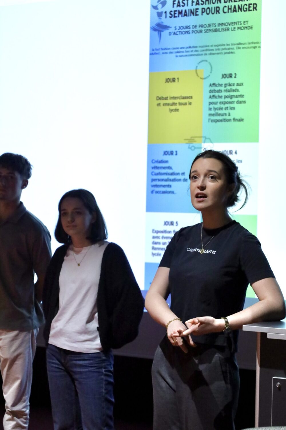 Après avoir exploré les impacts cachés du modèle Shein – conditions de travail précaires, échappatoires fiscales, pratiques de concurrence déloyale – les étudiants ont travaillé en groupe pour imaginer des projets d’action concrets :