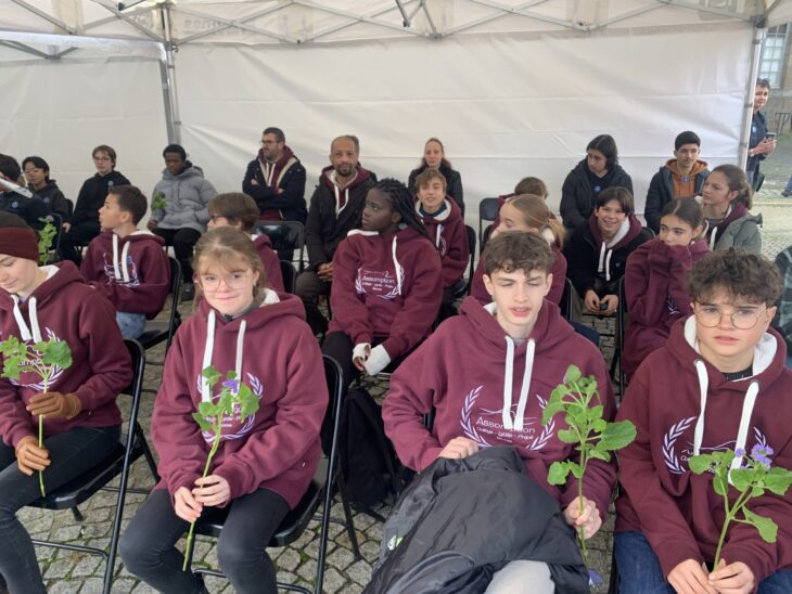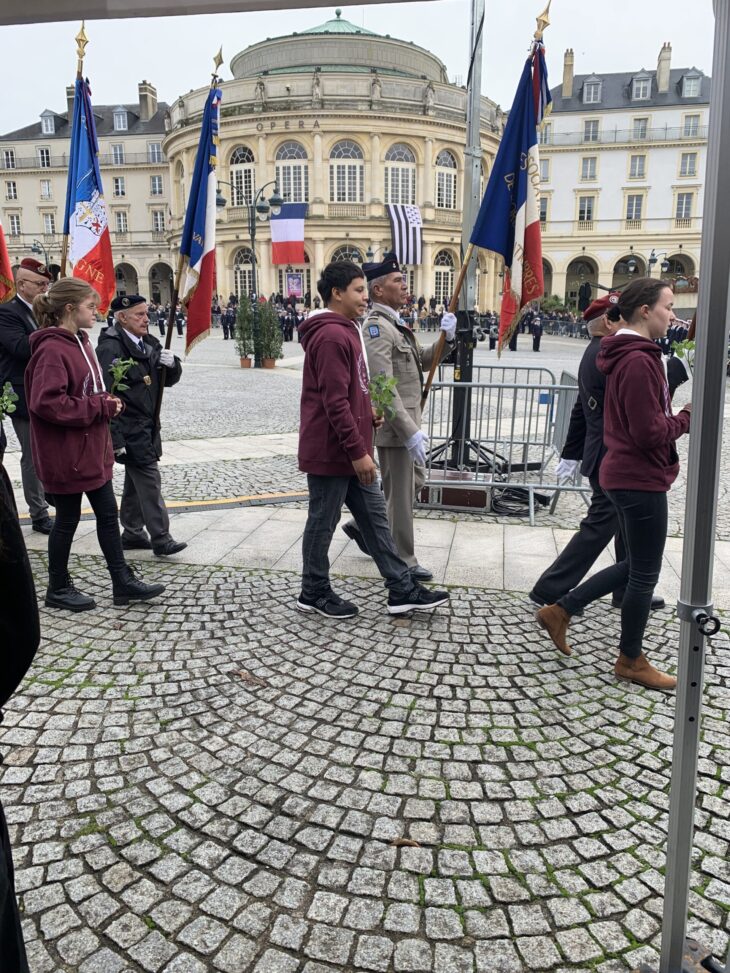 A l'invitation de la mairie, les établissements scolaires de Rennes participent aux commémorations nationales dont celle du 11 novembre. Les délégués de 4ème et une lycéenne ont représenté l'établissement en portant le sweat de l' Assomption. Un moment solennel et émouvant.