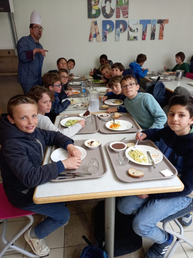 Les élèves de CM2 découvrent leur futur collège: cours, rencontres avec des sixièmes, récréation et self.