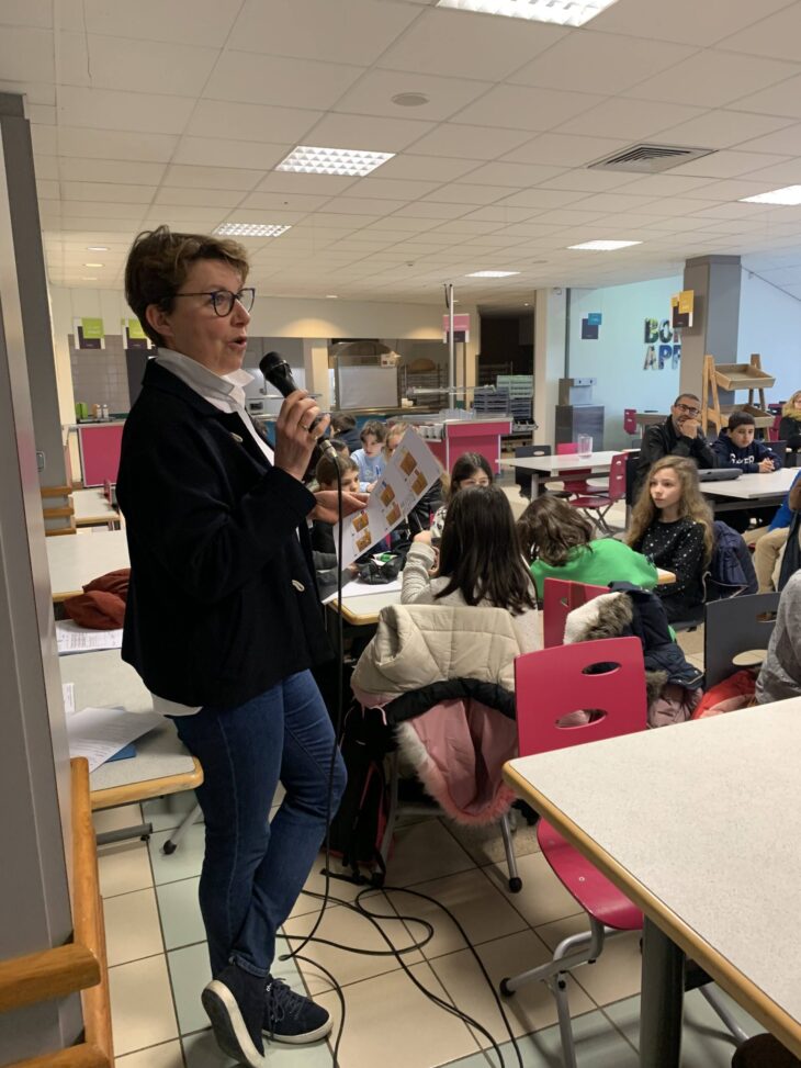Mme Gautier, responsable pédagogique du niveau sixième accueille les CM2.