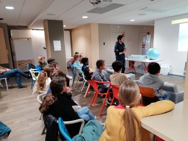 Chouette sortie autour du Polar Pod. Clément a expliqué aux élèves de CM2, les dimensions de ce futur bateau vertical quasi sans impact sur l’environnement: il se laissera dériver par le courant autour de l’Antarctique, dans l’océan austral pour mieux observer la faune polaire, les résidus de pollution, des phénomènes météorologiques… Il a de très grandes dimensions, et ils seront 8 à bord, par équipes tournant sur 3 mois pendant 3 ans !! Bon vent à ce beau projet😁 !!