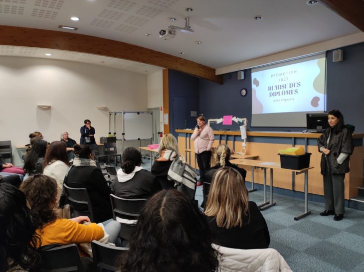 Les nouveaux aides soignants se sont vus remettre leur diplôme lors d’une sympathique soirée. Au delà de leur réussite, leurs enseignantes rassemblées autour de madame Richard, chef d’établissement, les ont félicités pour leur engagement dans l’accompagnement de la personne.