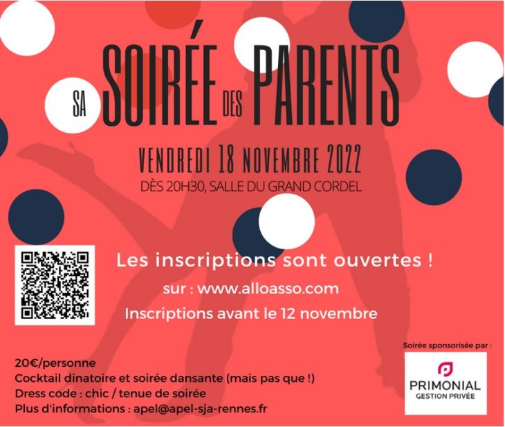 Inscrivez-vous sur : Soirée des parents – APEL SAINTE JEANNE D’ARC RENNES (helloasso.com)