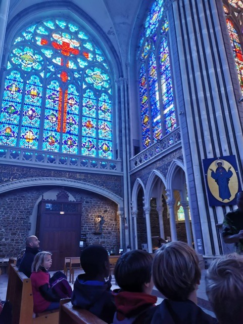 Après un pique-nique dans le jardin à côté de la basilique, l’après-midi a été consacré à la visite guidée des lieux en 4 groupes. Nos élèves ont pu ainsi découvrir la grange, l’église paroissiale, la basilique et la chapelle des lumières.