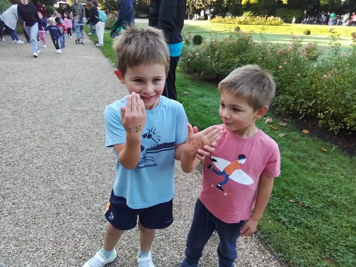 Ce vendredi matin, tous les élèves accompagnés de nombreux parents se sont rendus au Parc de Maurepas pour courir. A chaque tour fait, un point est marqué sur le dos de la main de l’enfant. Reste ensuite à compter le nombre de points pour connaître le nombre de tours accomplis !