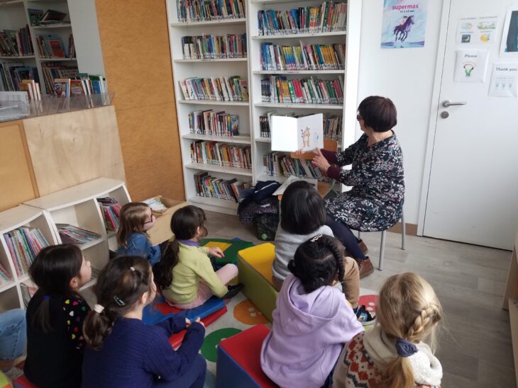 Un vendredi sur deux depuis le mois d’octobre, Jeanne et Chantal (de l’association « Lire et faire lire ») viennent lire des histoires par groupe de 8 ou 9 aux élèves de CP. C’est super !!!!