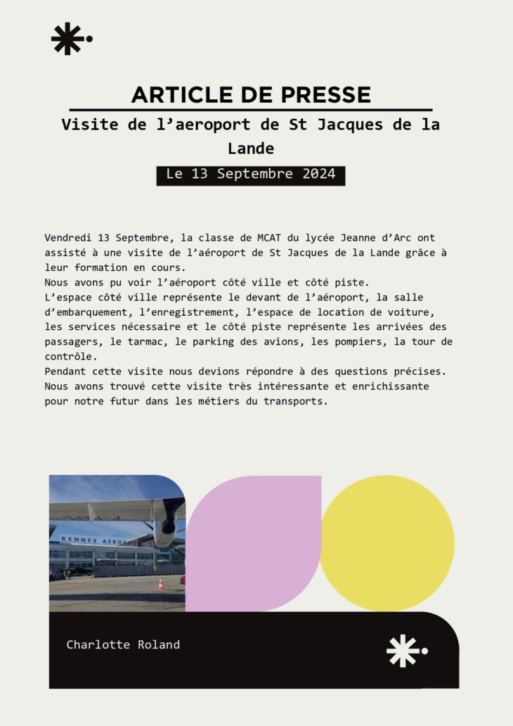 Les étudiants en Gestion de la PME ont visité l’aéroport de Saint-Jacques-de-la-Lande. Encadrés par Mme Rouiller, ils ont découvert les coulisses des opérations aéroportuaires, des procédures de sécurité à l'embarquement, et ont exploré la piste tout en apprenant les enjeux liés à la sûreté et au fonctionnement des services.